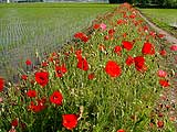 2002/05/08(Wed)真っ赤なひなげし♪ akkoは「ポピー=ひなげし」の花が大好き♪ 中学生の頃のMyマグカップも白地にオレンジと黄色のポピー柄 花屋の店先でひなげしを見つけると 時々買ってくる。 同じくakkoが大好きな画家モネの描いた「ひなげし」 =真っ赤なひなげしが咲く丘をモネの息子ジャンが駆ける絵 オルセー美術館でその1枚の絵の前で 随分長く眺めてたっけ♪ その真っ赤なひなげしの花を パリ郊外の道端に見つけた時 思わず「真っ赤なポピーだぁ!」って叫んじゃった♪(^^ゞ 同時に『日本じゃ見ないなぁ。。』って思って残念だった! ・・・が!!! 最近 極めて稀に 日本でも「真っ赤なポピー」を見かけるよね♪ 先日 九州でも道端に数輪見つけたし♪ 「日本にも真っ赤なポピーが咲けるんだ!!」って嬉しかった そしたら・・・先日、、、 地元の時折通る道端に 真っ赤なポピーが咲いてるのを発見!! 道端と その先に続く田圃のあぜ道に 結構な数の真っ赤なポピー♪ 片側1車線で歩道もないような田舎道で、車を停める訳にも行かず。 写真に撮ることも ゆっくり眺める事も出来ずにいるのが残念だけど でも、その道を通るのが 楽しみなakkoだったり♪ 今日も その道を通ったんだけど この前通った時よりも花の数が増えて 一層綺麗♪ヽ(・ω・)ノ 加えて、田圃の田植えが済んでて 『水田と真っ赤なひなげし』の景色が なんとも日本的♪(笑) 今日も チョットだけアクセルを緩めてソノ場を過ぎるakkoでした♪ 「真っ赤なひなげし」だけでなく それ以外にも 心が暖かくなった今日♪( ̄ー ̄) 朝の「今日の星占い」(今朝はCX見てた)最悪の12番目だったけど どうやら 今日の天気と同様、良い方に外れてくれたらしい(笑) ・・って事で akkoの「体内天気」も すっかり回復♪(*^^*ゞ |