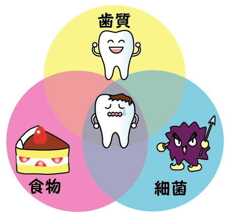 むし歯はむし歯菌が歯にくっついて歯を溶かして穴をあける病気です。