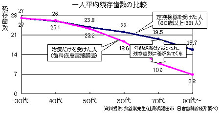 治療を始めてから30~40年で歯を失う計算になります。