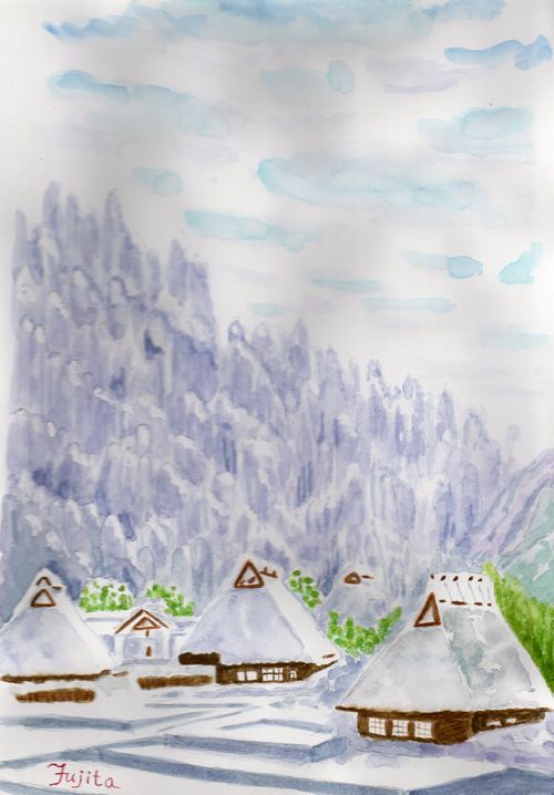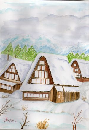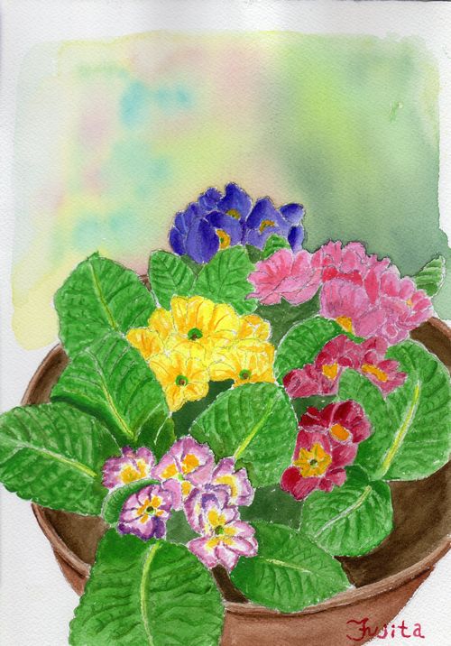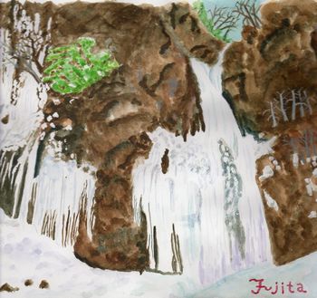 | プリムラジュリアン 21cm× 30cm 画用紙 | 奥日光庵滝 20cm×28.5cm 画用紙 |