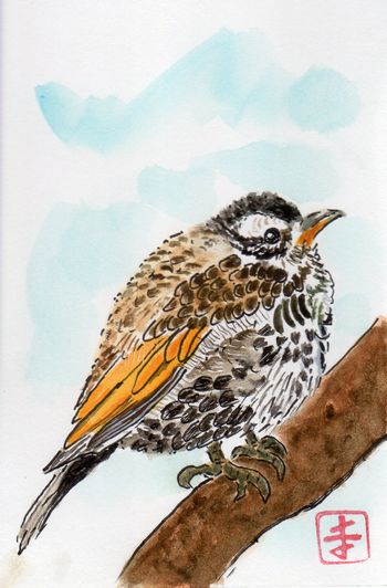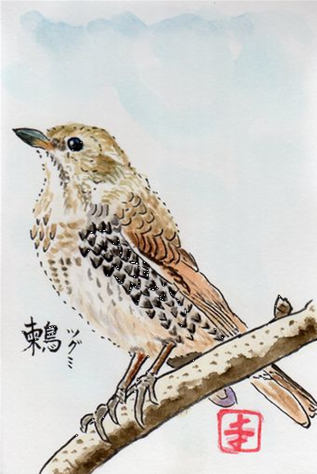 | ツグミ(雌)10cm×14.7㎝ 学画紙 | 鶫(雄) 10cm×14.7㎝ 学画紙 |
