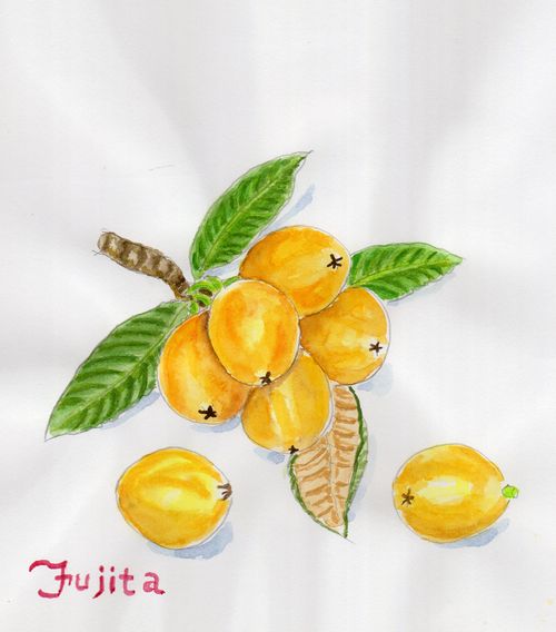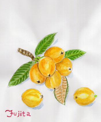 | 桃 18cm×20㎝ 画用紙 | 枇杷 22cm×25cm 画用紙 |