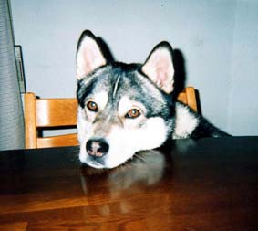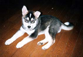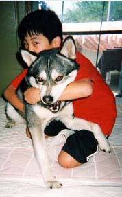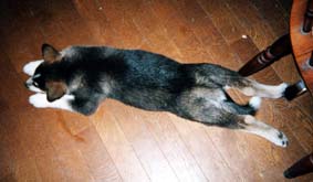 平成11年8月5日。 うちに来たばかりのシド。 コースで見かけた時に、ひとめぼれでした。 瞬間的に「あっ、この子はうちの子になる!」って思ったほど。 お風呂に入れてひざの上でタオルにくるんで拭いていると、いびきをかいて寝てしまうのです。胸がきゅんの思い出です。(親ばか!) |