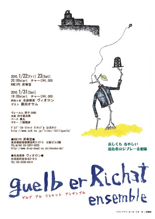 2010年1月22日[Thu]~23日[Fri] KNEIPE 昇華堂 2010年1月31日[Sun] 阿佐ヶ谷 名曲喫茶 ヴィオロン ゲスト:黒田オサム(ホイト芸) |