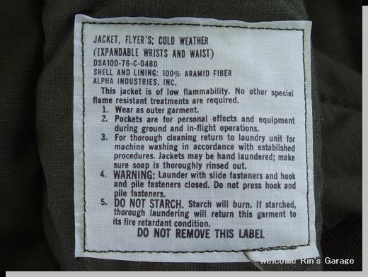 耐熱性の高いアラミド繊維を使用した、1976年度契約のヘリパイジャケットです