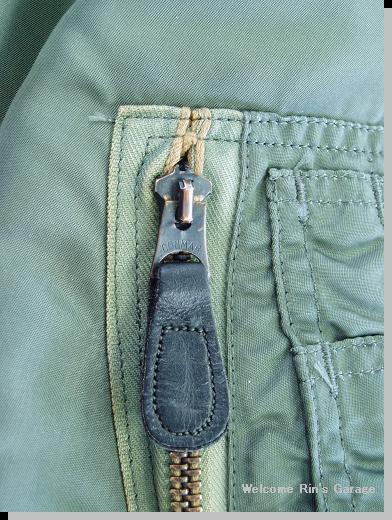 ファスナー左右の生地に見える傷は、パッチの剥がし跡です