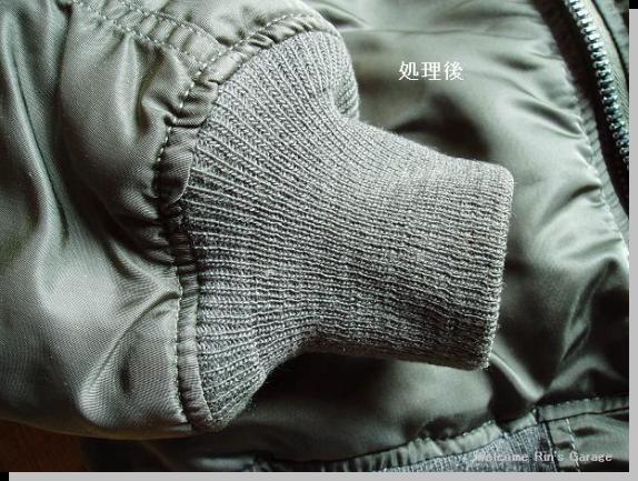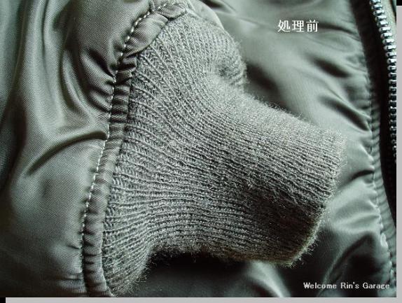 袖リブの毛玉取り前と