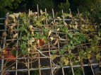 27日 梅雨の敷きなので、雨がぽつぽつと降る。少しうどん粉病が見えた。 今日は晴れたので、自家製農薬をつけた。 30日 結構棚が葉で一杯になった。 棚に上ったツルに所々の節に根が勝手に出てきた。思いっきり必要ないので摘み取った。 自家製農薬をつけた。 うどん粉病が下からついてゆく…。