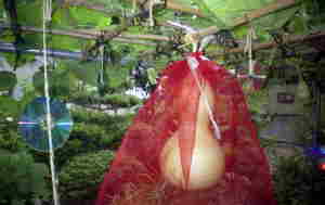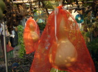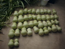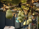 10月3日雨。最終仕上げの予定していたものがすべてキャンセル。来週こそはできるだろうか? そろそろ寒くなってきたので、早めに作業したい…。 11日 あく抜きの千成を水上げ。約3週間のなが入浴だった。あまり天気は良くないけど、天日干しに切り替えた。 国東一も水上げ。重い。腕が痛い…。(T_T)種がやっと取れた。でもまだ一部腐りきっていなかった。まぁ黒くなっていなかったので良かった。(^3^)♪ それとまだ種もアク抜きといっしょに水漬け中だけど、このページを読んでいる人で取れた国東一の種をほしい人がいらっしゃいましたら差し上げます。その旨と住所と氏名を書いてメールください。たぶんお届けは早くて今月末になると思うけど…。 30日 ここのところ忙しくて、水上げができない状態だったけど、時間ができたので今日こそ水上げ…と思ったのに、雨。(T_T)またもや延長。種を差し上げる方、もうちょっと待ってください。<(_ _)> 11月 3日 やっと種が取れた〜〜〜。(T▽T) ここまで長かった…。あとはお片付けをして、そうこうしてるうちに、来年の土作りもしなくては。 12日 種も本体も乾燥して、今年の収穫作業もおしまい。 メールで種を希望された方は順次発送しております。 ジャンボひょうたん会の大会が今月末にあるけど、そこに出品する作品が今から作れるだろうか? 27日28日 JH(ジャンボひょうたん)大会にいってきました。 ひょうたん好きにはかなり充実した日でした。その模様はホームページで近日アップします。 国東一の種を送った方からお礼状を沢山いただきました。その返事のはこの場にてかえさせていただきます。 人工受粉をきちんとしたので大丈夫だとは思います。 12月 18日 今年も無事すごすことができました。今月は来年に向かって、お片づけ。 畑に穴を掘って、ワラつめて、堆肥つめて、鶏糞牛糞を入れた。