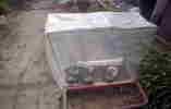15日 弥栄芽が出ない…。 中瓢もひとつ死んだ。最後の種を植える。 (+_+) 22日 野ざらし夕顔死ぬ。(あたりまえか…) (^^ゞ この時点で二段接ぎは早くも挫折。 アトランティックジャイアントは、二つ発芽して、鉄かぶとは一つも発芽しない。 弥栄が発芽した。けどもしかしたら、この発芽は一つ間違って植えた去年の雑種の種のような気がする。 最初の弥栄はいいかげん発芽しないので、捨てた。国東一を植えた。 24日 ジャンボひょうたん会に質問メールしたところ、国東一の弥栄の追加を送っていただいたので、早速、助言どおりにバーミキュライトを芽だし用土にして植える。前回は市販の芽だし用土を使ったんだけど、それはダメなのかな?それじゃ芽だしじゃないジャンと突っ込んだ今日この頃。 水のやりすぎかもしれないということなので、最初の越水の後に水を切ることに力を入れた。 会長さん感謝。 <(_ _)> 29日 土のPhが下がらないので、土を少しかえた。竹酢液と窒素肥料を入れる。 31日 プランタのビニールハウス(育苗箱)が、風に倒されてしまった。(;O;)支えをつけて、(上の写真参照)昼は外に出して夜は家内へ入れる。 アトランティックジャイアントと弥栄を接ぎ木する。ダコの100倍液もつける。 手術後なので、芽出し箱にいれておく。多分ここが一番いい環境だろう。高温多湿日陰。 4月1日後もらいの国東一と弥栄が発芽。育苗箱へ引越し。 育苗箱は昼は外に、夜は中にと続けている。 2日 間接光を接ぎ木に当てる。 中瓢と鉄かぶとを接ぎ木。今回は上手くいったと思う。 15日 現在の状況 ・トレーニングルーム(育苗箱) 接ぎ木していない国東一弥栄全部。 国東一の接ぎ木 いつになっても出てこない弥栄の種 ・一般病棟(キャップ) 弥栄+アトランティック一つ ・集中治療室(芽出し箱) 中瓢+鉄かぶと 国東一+鉄かぶと