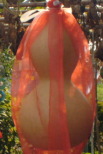 しかし、はっきり言ってこのへんの…特にロープ技術は経験がモノをいいそうなため、初心者が特大ひょうたんを作ることはここらへんが理由の一つでであまりお勧めされないと思いますが、(他の理由は小さいひょうたんに比べ金がかかる、手間がかかる等)その技術を使わず生長に障害をきたさない支え方は、「台座法で毎日チェックする」コレしかないと思います。つまり、大きくなるにつれ、雨が降るにつれ、なんにつれ、台座の微調整をする。天気予報で風が吹く日のみロープ等で固定する・・・。技術を使わない(使えない)ぶんは、労働力でカバーしましょう。