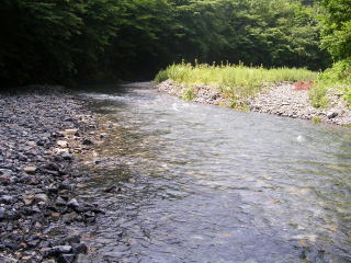 増水とあって上流の渇水気味の支流に入った。ここも大増水したのだろうか川の様子が若干変わってしまった。