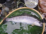 ブルーになってしまった気持ちのまま覗いた支流、ライズしているヤマメを一匹釣り、暗くなる前に川から上がった。