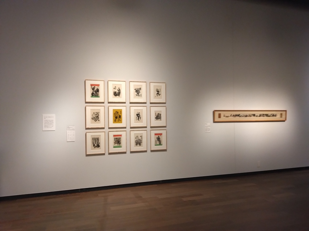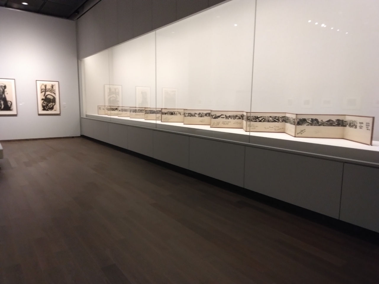 版画絵巻「平和を世界に」は12メートルの作品がガラスの内側に拡げられ、「平和を世界に」の圧倒的な世界観が広がって原水爆禁止の思いを観覧者に丁寧に訴えかけています。