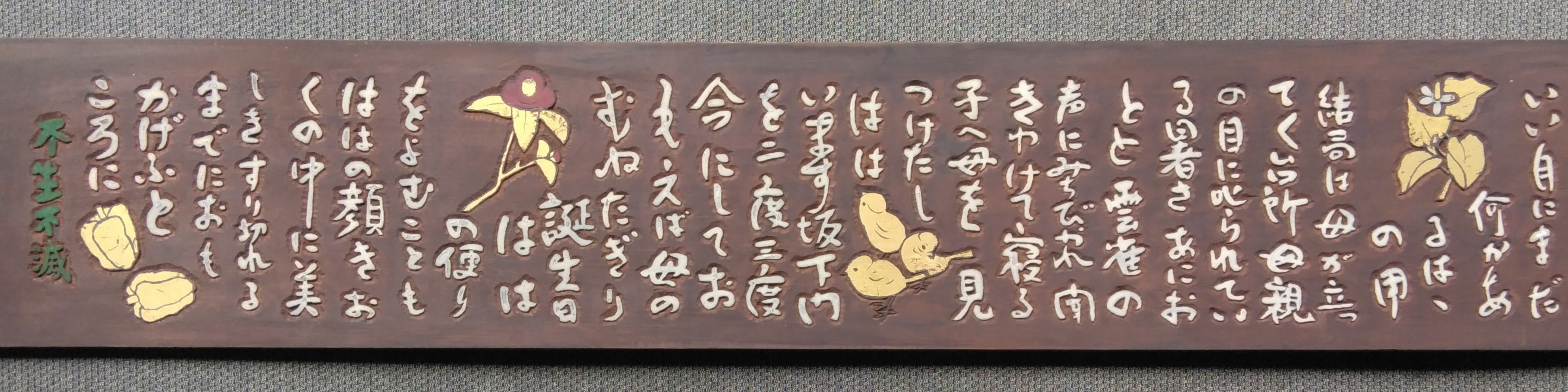 これまであまり展示されてこなかった、賢二が病に倒れた後、左手で制作した「子どもの頃の思い出」の数点が最初のコーナーにあります。賢二、60才を過ぎたときの作品です。