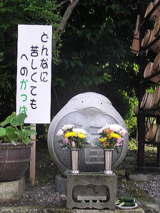 水神様又はその使いが、零落(落ちぶれる)したものとされる河童だが、当山の河童はたぬき?、トトロ?にも似ている。どちらかというとふくよかで幸せを与えてくれそうな「福河童」である。