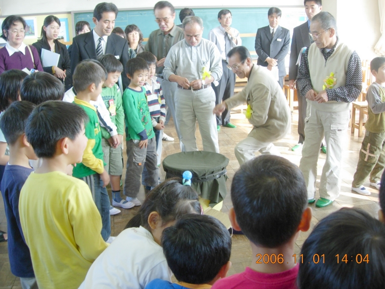 子ども達は、温かいお年寄りの眼差に包まれて教 えてもらいながらいきいきと昔遊びを楽しん後、遊びの感 想を発表した。「できるようになってうれしかったです。」 と語る子ども達も、子ども達に教えたお年寄りの方達も、 同じように満足感に満ちあふれていた。安塚小学校の継続 されてきた実践の成果を感じさせていただいた。