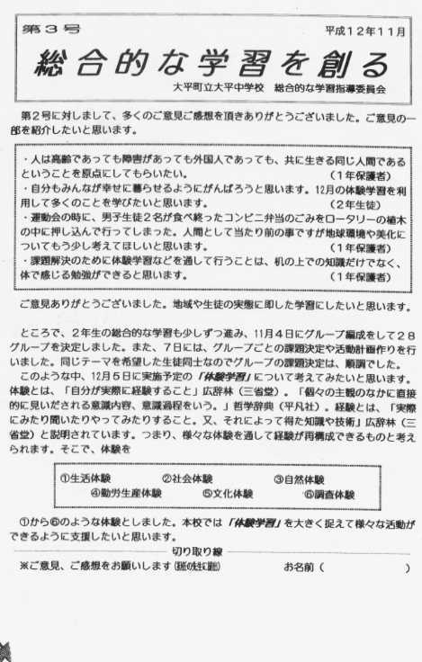 者の考えが学校に伝わるような工夫をしている。これらの意見は次号の学校通信に掲
