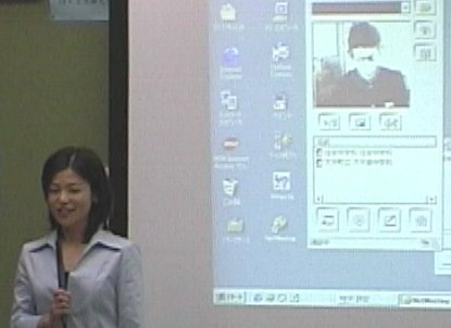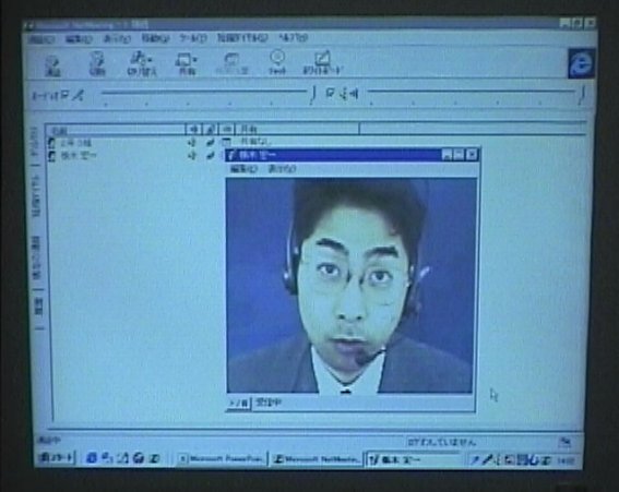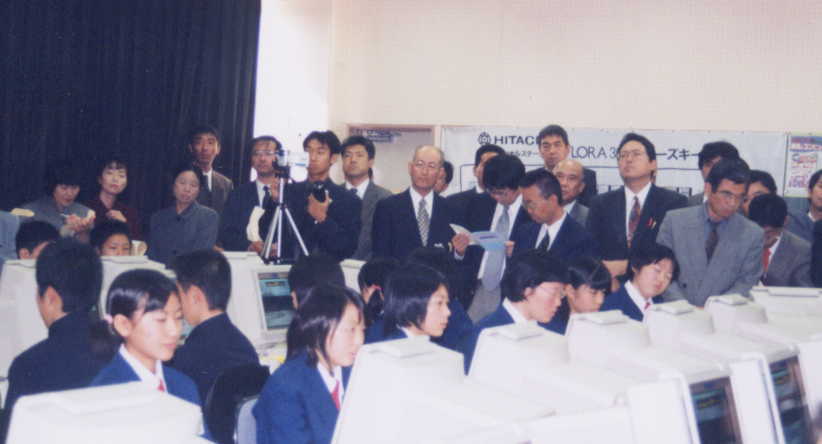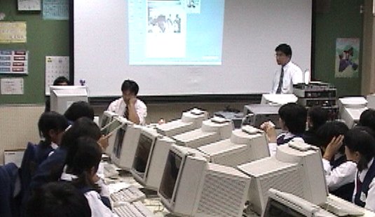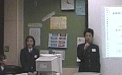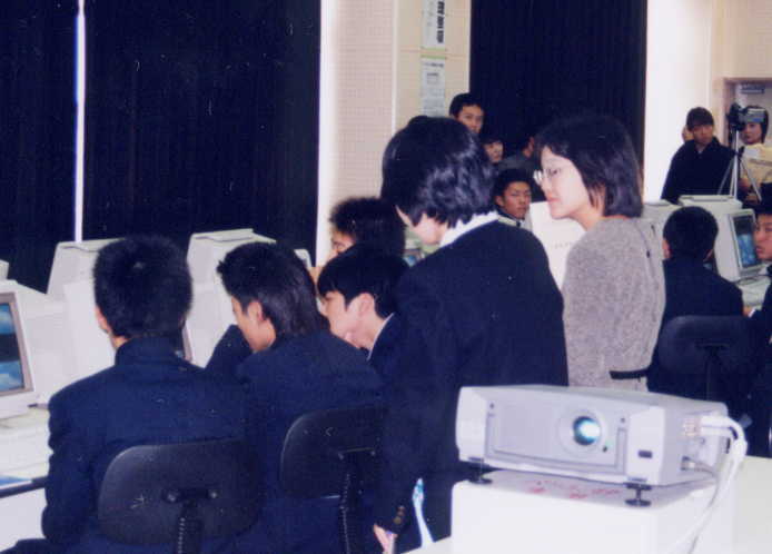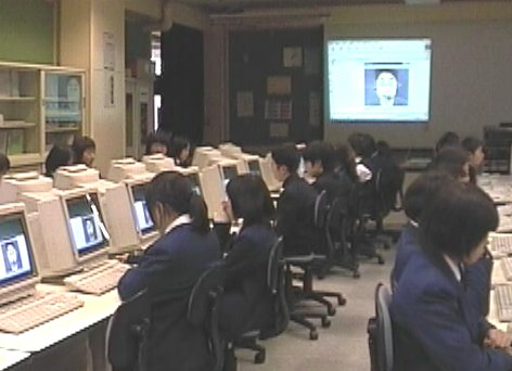 その後、交流校の住吉中学校へネットワーク回線(NetMeeting)で接続した。前年度に三協コンピュー