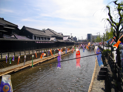 | 巴波川と蔵の街 遊覧船 | 春にはたくさんの鯉のぼりが |