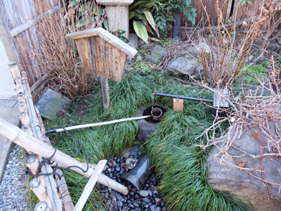 | 乗り場(受付・待合処)の様子 | 庭園には水琴窟なども |