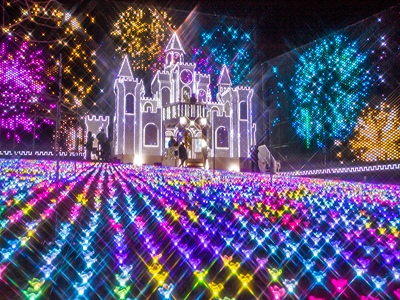 | 春の見事な藤の大棚 | 光の花の庭のイルミネーション |