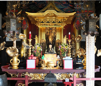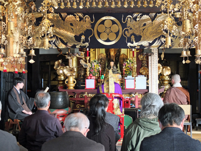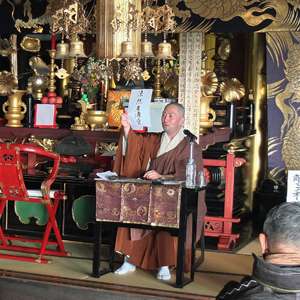 | 御忌会 本堂の様子〜ご本尊前に法然上人像 | 御忌法要の様子 | ご法話:足利・蟹和大穣師