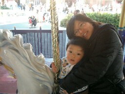 | メリーゴーランド!少し緊張しながらも、しっかり棒につかまっていて楽しそうでした。 あー、家族で旅行は最高! 絶叫系が乗れない俺には小さい子どもとの方が気楽だ。大きくなって「パパ、あれ乗ろう!」って言われてジェットコースター指差されたらどうしよう。 |