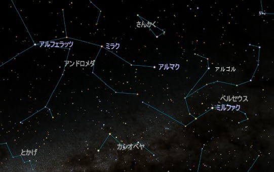 アルゴルはペルセウス座にありますが、となりはアンドロメダ座です。アンドロメダ座の中で、アルゴルに一番近い星の「アルマク」が、通常の明るさのアルゴルと同じです。