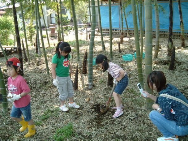 タケノコは食物繊維、カリウム、ビタミンAを豊富に含んでいます。当園のタケノコはアクが少なく柔らかいのでおいしいと評判です。 |