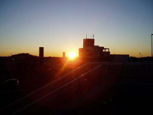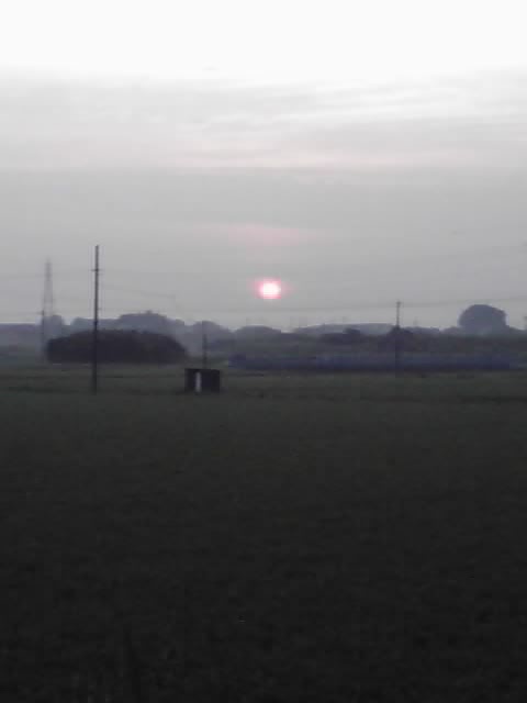 帰り道は、車両一方通行なので田沼側に降ろされてしまった・・。 アウトレットのところから初日出 7:00頃 やはり凍りました、寒かった・・。 |