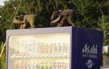 日の出前・・・。 通りすがりの自動販売機で、何か気になって確認したら、熊の置物が!