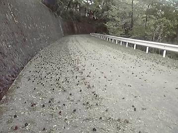 今日は、朝から風がつよかったー。唐沢に行ったら、道路全般に葉っぱと松ボックリが大量に散乱していて、台風の後って感じ。 登っている最中に松ボックリの上に載ってしまい、危うくこけそうになるし、くだりはツルッと行きそうだし・・・。 しばらくは、唐沢は怖いかも。