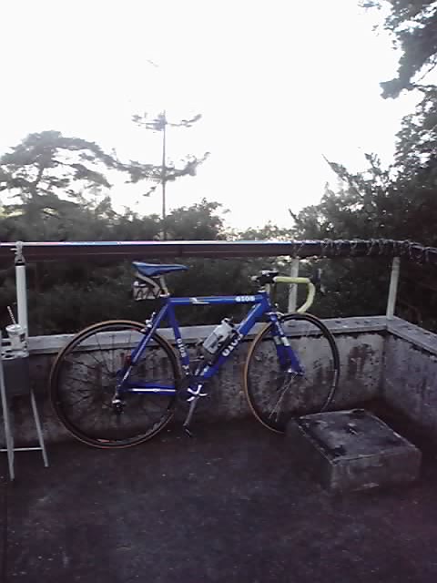 練習から帰ってきて、昨日の雨上がりの汚れを拭いていたら・・・な、なんと! リヤホイールのスポークが1本折れているではないですか!!!!!!!! ショックです。このホイールは自転車を買ったときについてきたものだから寿命??きにいってたのにな。 |