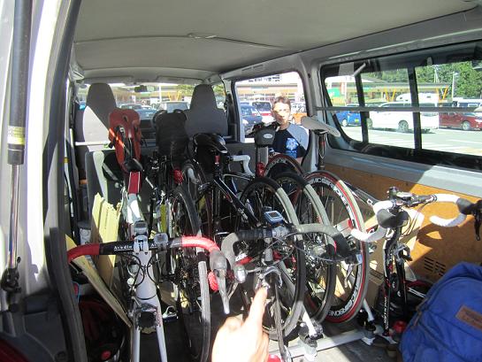 5時には間に合い、さくさくッと三人の自転車をレンタルしたハイエースに