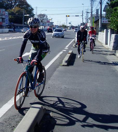 途中、単車の集団が抜きつ抜かれつ。