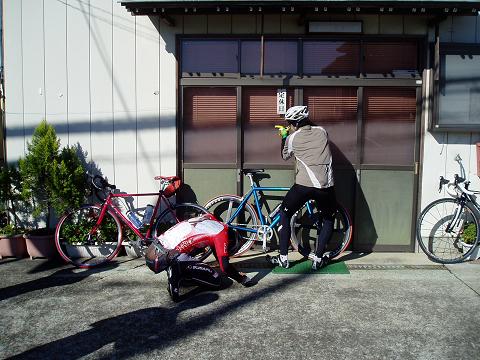 今日のバイクは、ひょこせさんが以前乗っていたクロモリ(再塗装済)