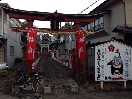 久しぶりに乗るので、山はハードルが高いと判断し、館林方面から板倉町南地区を回って帰宅。 途中、高鳥天満宮前でパチリ!
