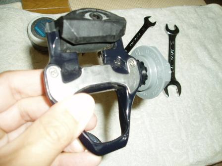 ところが・・・ 長石林道を登った際に、右のペダルから 『こつん、こつん・・・』と 上死点から下死点に向かう途中で、 規則的に何かが引っ掛かっている感覚。 ベアリングか?? 中古だから、仕方無いのか??? 特に踏みにくい感覚ではないが、 なんとなく いや!! やはり、直接体に関わる部品は、 新品がよいのか?? |
