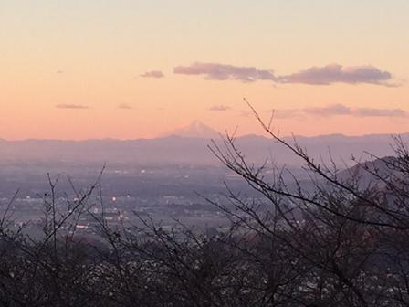 2時間05分 途中の日の出前 太平山の謙信平からパチリ! 朝焼けに染まる富士山がきれいです! 水戸の方面(かな?) |