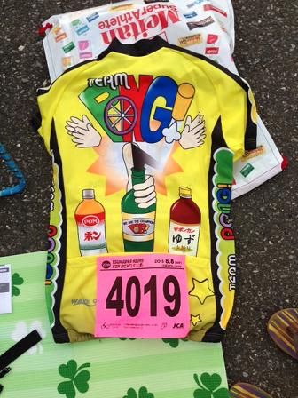さっそくジャージにゼッケンを取付、自転車にセンサーを取付て