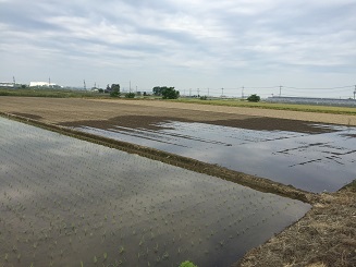 1時間53分 雲の隙間から朝日が! 田んぼに水が入り始めました。 |