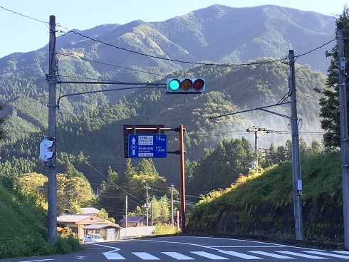 で、しばらく走ると、分岐点の看板が出てきますね。