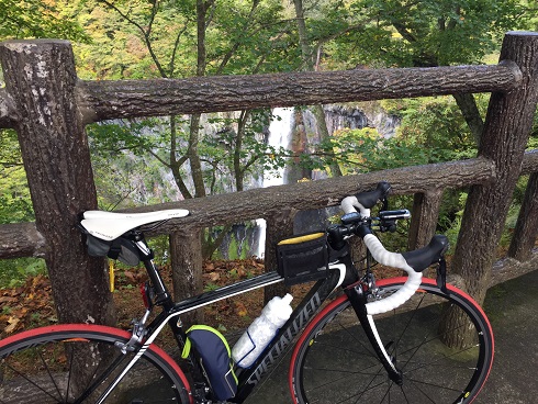 で、自転車で来た証拠に、華厳の滝と一緒にパチリ!