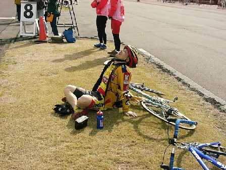 レースを終え、コースから外れると、とたんにぜんそくになったように、肺が苦しくなり、