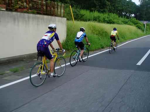 今日は、プチポン!練習会です なかじーさん、ひょこせさんそしてアルゼンチンの方(名前忘れちゃった・・)と私の3人 乗鞍直前ということで、どれだけのだめだめかを確認する結果になってしまったが・・・・・ なかじーさんが連れてきたアルゼンさんは地元ではスペシャのロードにカンパで乗っていたとのこと。今は、GIANTの完成車を購入して乗っている。坂道はにがての様で、ガクンとペースダウンするのだが、峠をすべて終了した後の平地で、ひょこせさんのスピードについていける(もちろん私は、ちぎれました)足をお持ちでした。つれてきたなかじーさんもびっくりです。 これは、筑波8耐向き? |