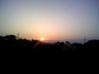 家を出てからちょっと経ったとき、きれいな日の出が出たのでパチリ!5時30分 大平山の頂上(上の駐車場より栃木の町)