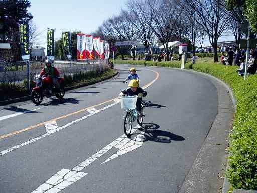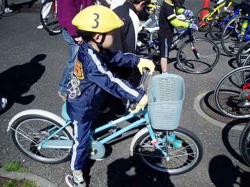 スタート時間が近づく中、隣のロードに乗っている子が、