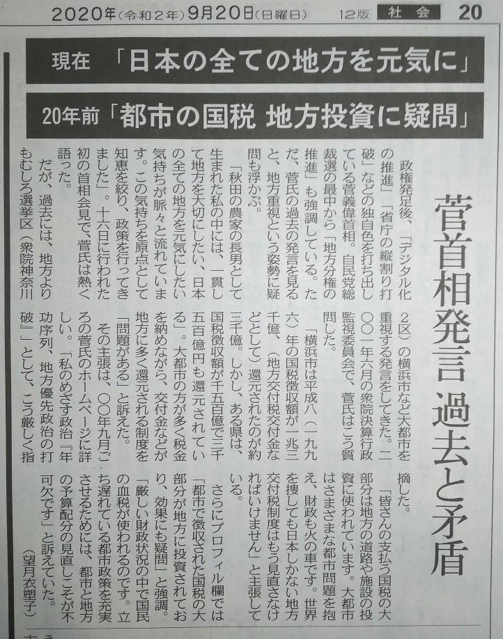 ⇒関連で 以下東京新聞2020年12月9日 配信
