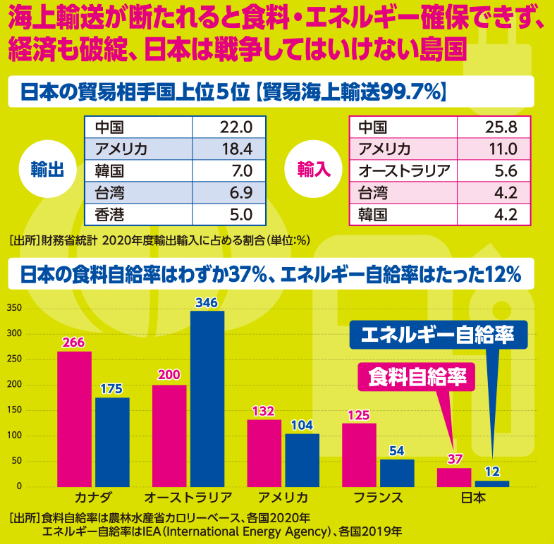 *日本の食料自給率は37%、エネルギー自給率は12%。